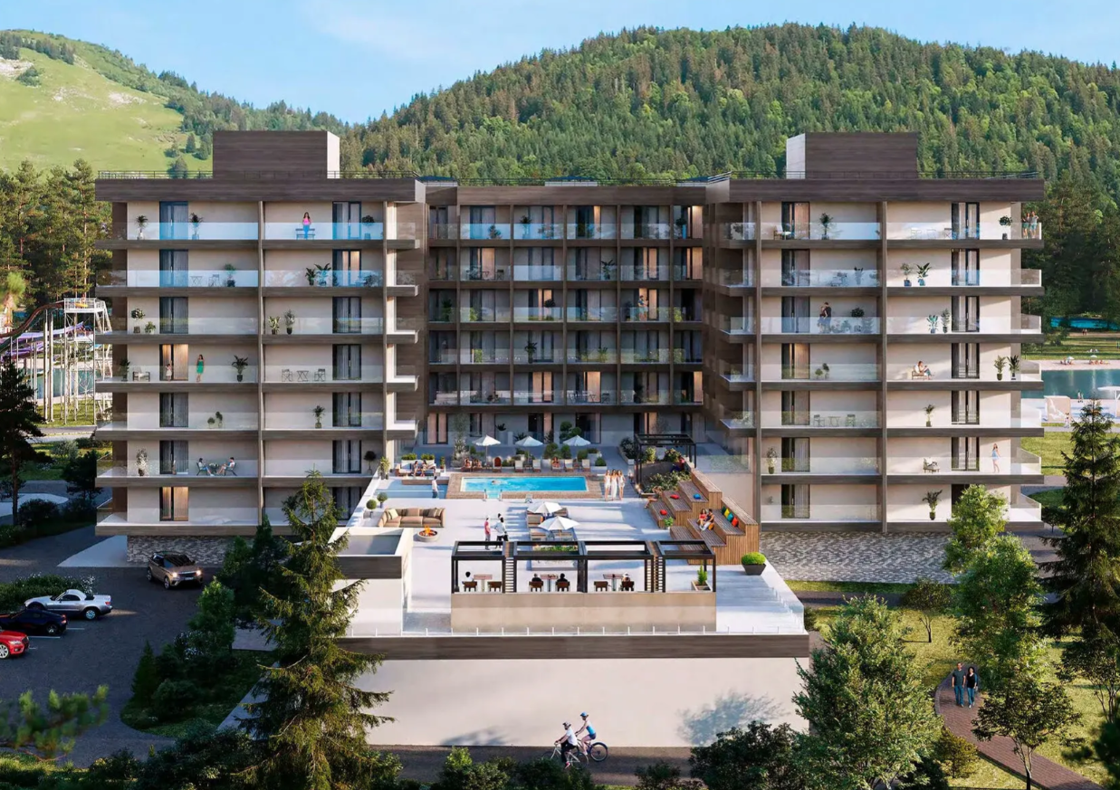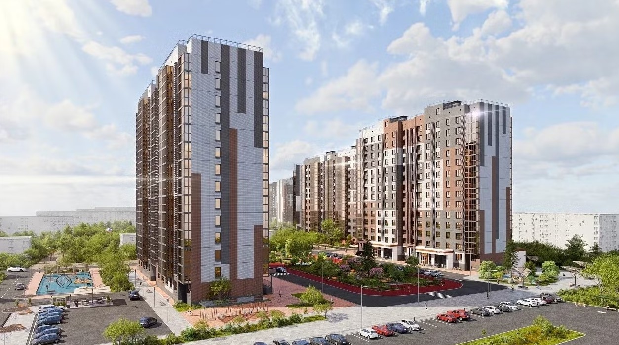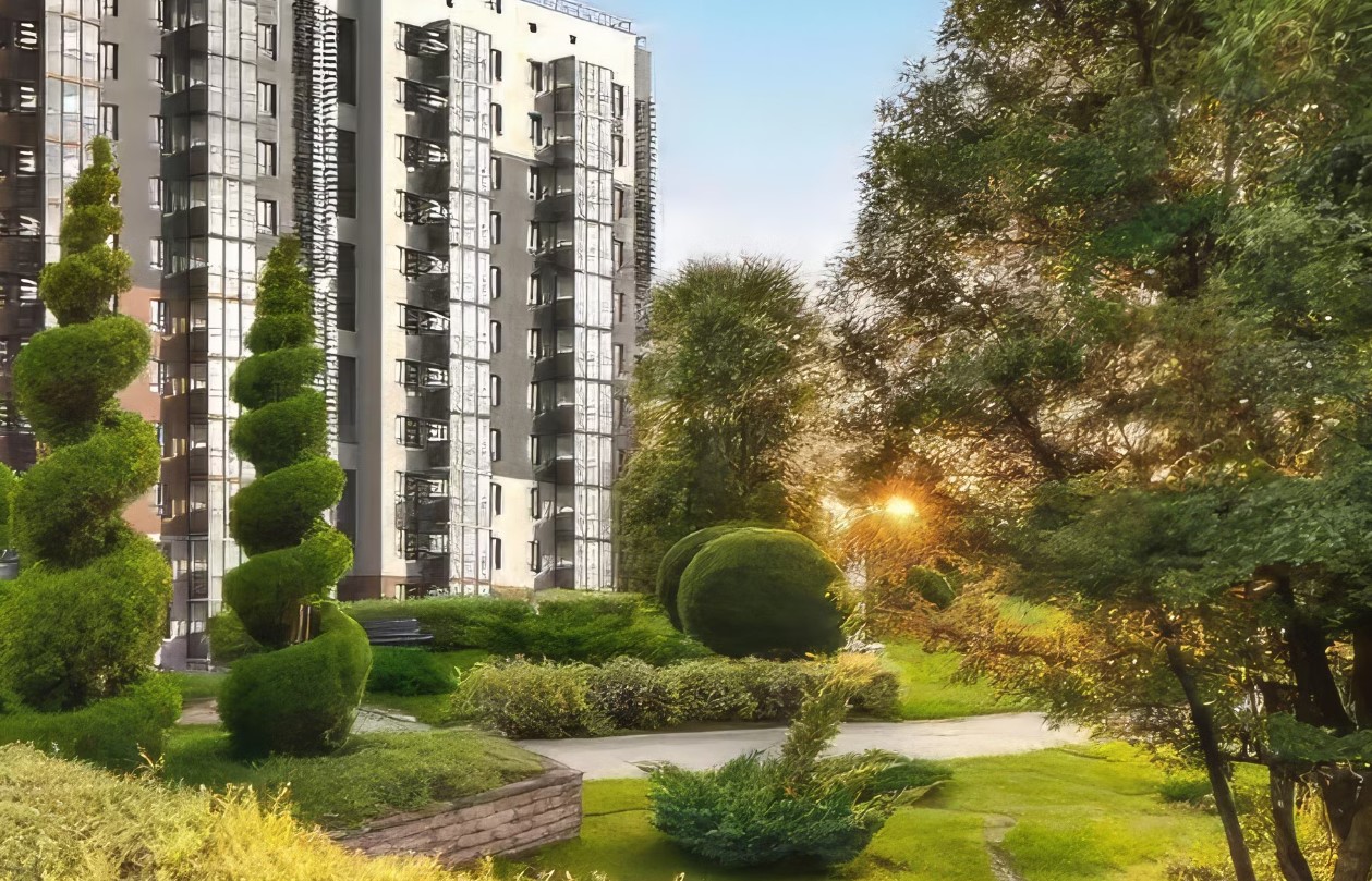 Жилой комплекс в 1 км от моря, включает в себя дома разной этажностью.